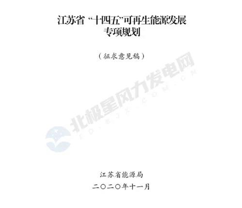 北極星風(fēng)力發(fā)電網(wǎng)訊:近日,江蘇省能源局發(fā)布《江蘇省“十四五”可再生能源發(fā)展專(zhuān)項(xiàng)規(guī)劃(征求意見(jiàn)稿)》)。